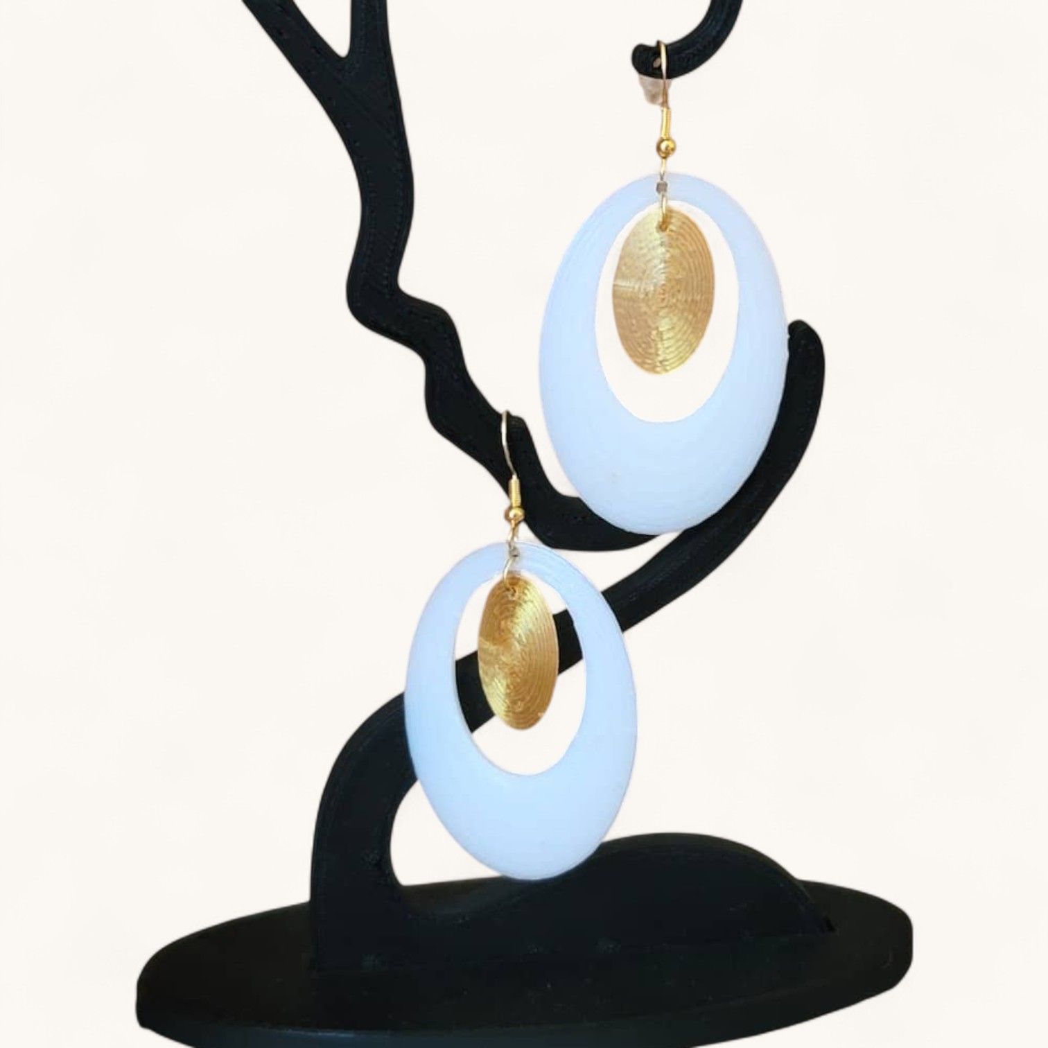 Découvrez mes boucles d’oreilles uniques, imprimées en 3D avec du PLA, un bioplastique issu de l’amidon de maïs. Légères et éco-responsables, elles ajoutent une touche moderne à votre look tout en respectant la planète. Offrez-vous ce bijou et durable !