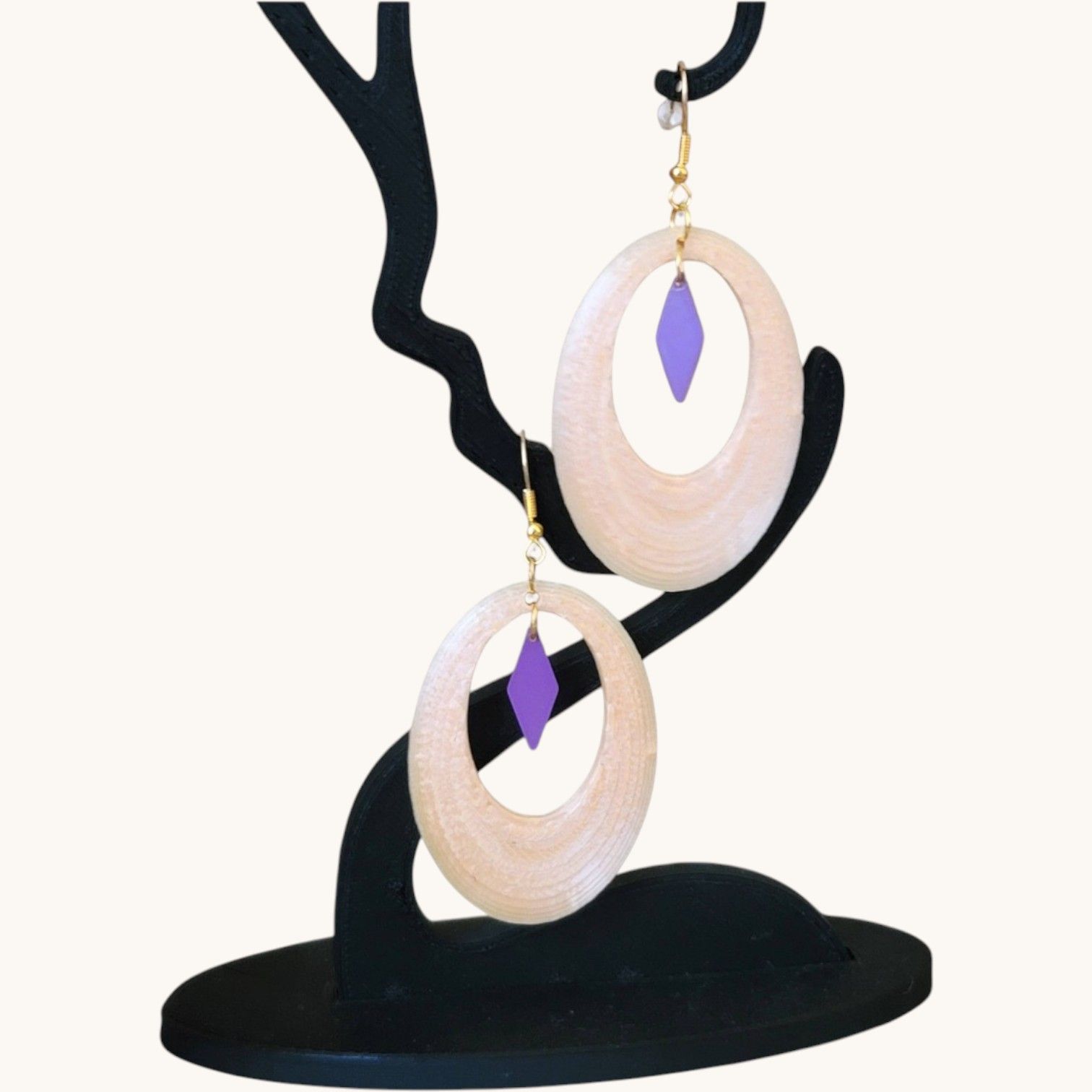 Boucles d’oreilles ovales bi-color – Élégance et modernité. Magnifiques boucles d’oreilles ovales, conçues avec soin grâce à la technologie de l’impression 3D. Fabriquées en PLA, un matériau respectueux de l’environnement