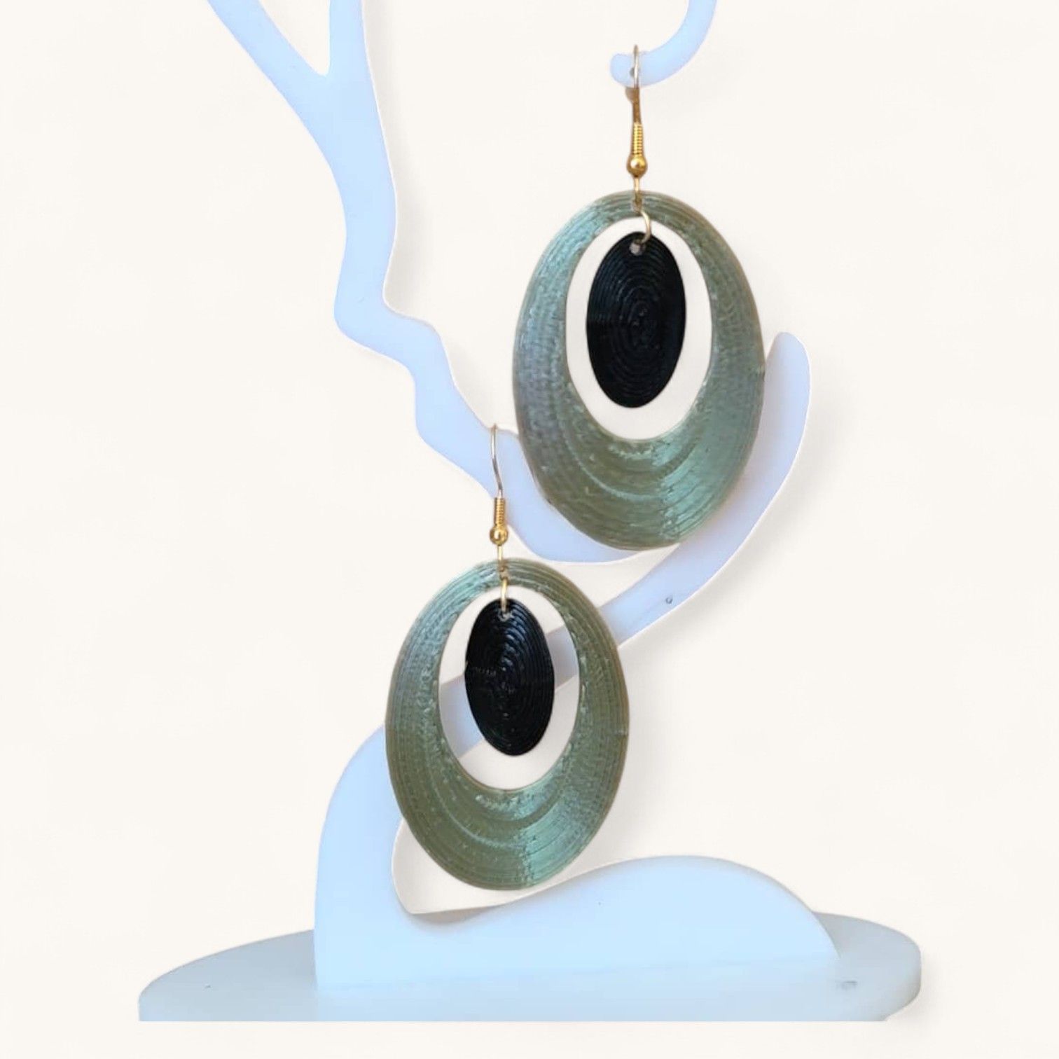 Boucles d’oreilles ovales bi-color – Élégance et modernité. Magnifiques boucles d’oreilles ovales, conçues avec soin grâce à la technologie de l’impression 3D. Fabriquées en PLA, un matériau respectueux de l’environnement