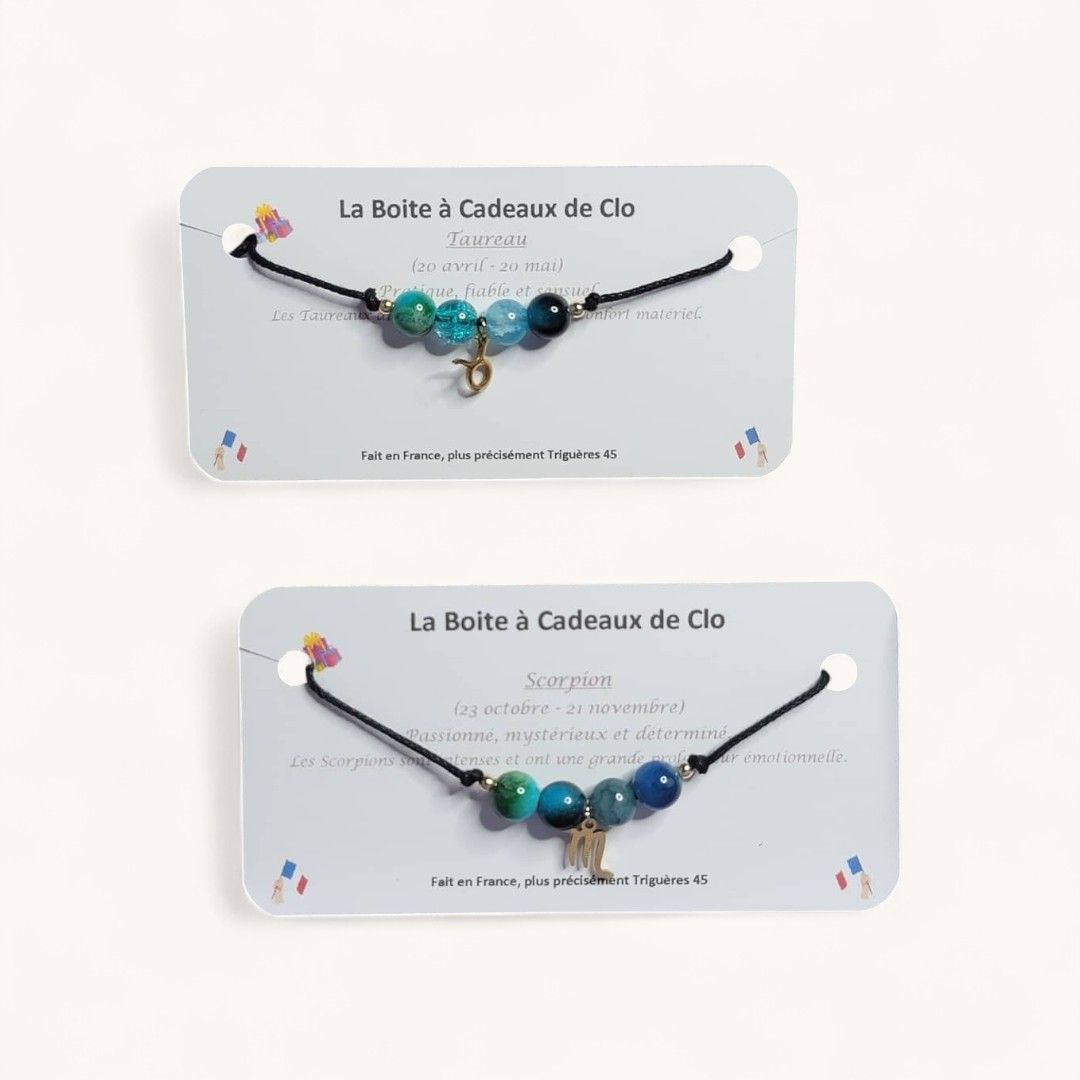 Découvrez mes bracelets en perles de verre, ornés d’une breloque de votre signe de zodiaque ! Alliez élégance et personnalité avec ce bijou unique qui vous accompagne au quotidien. Offrez-vous ce petit précieux ou faites plaisir à un être cher !