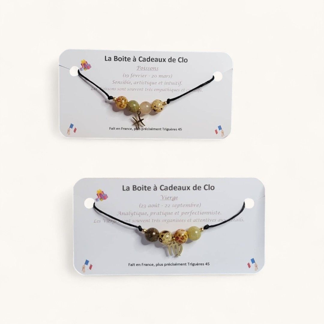 Découvrez mes bracelets en perles de verre, ornés d’une breloque de votre signe de zodiaque ! Alliez élégance et personnalité avec ce bijou unique qui vous accompagne au quotidien. Offrez-vous ce petit précieux ou faites plaisir à un être cher !