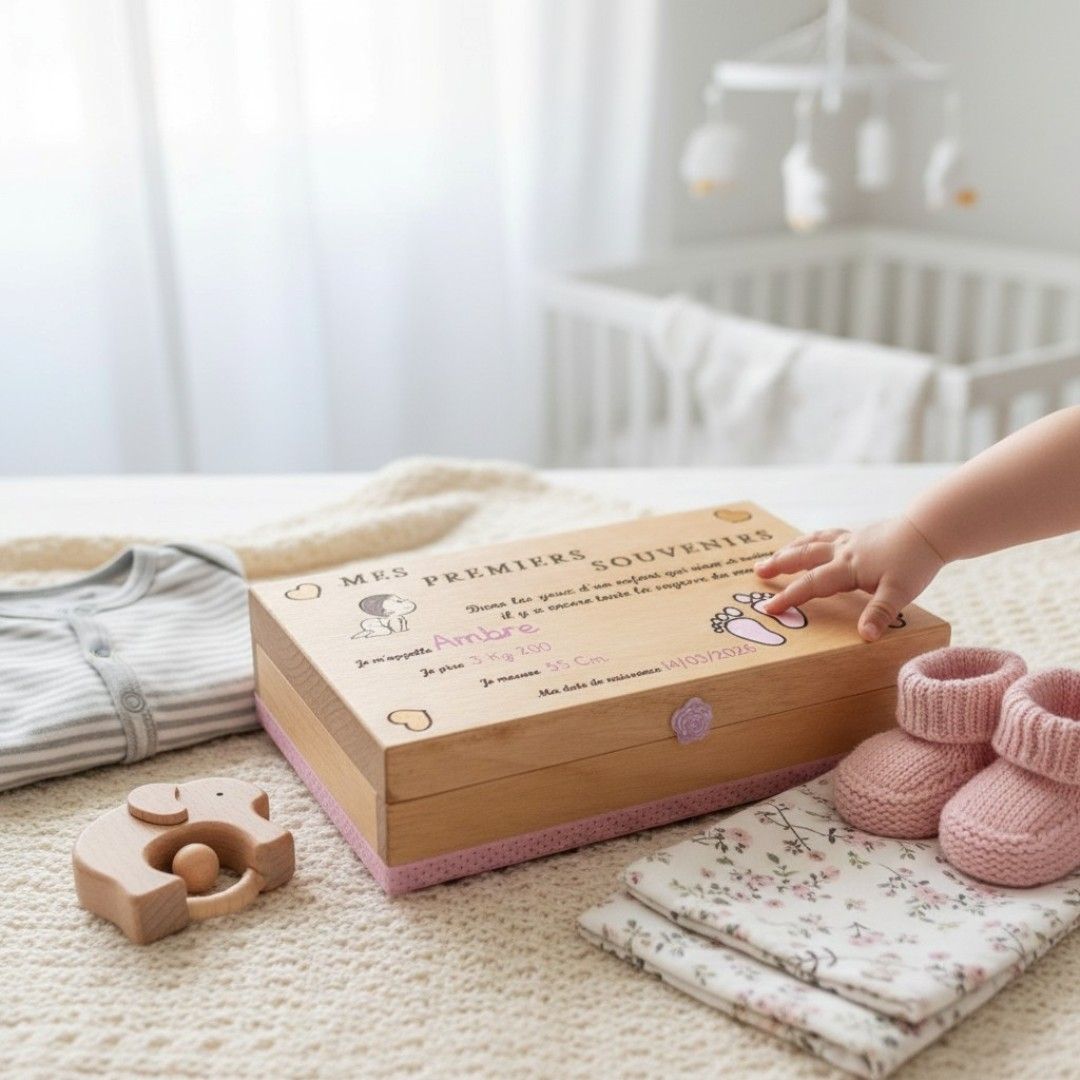 Conservez les moments précieux dès la naissance avec mon coffret “Mes Premiers Souvenirs” à personnaliser. Avec ses trois petits coffres, il permet de conserver trésors et souvenirs inestimables de votre enfant. Un cadeau unique chaque instant !