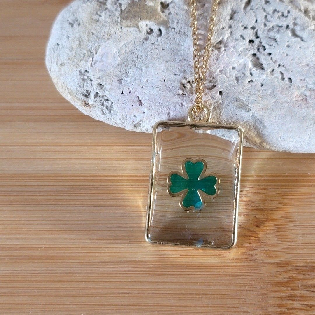 Médaillon rectangle résine transparente trèfle