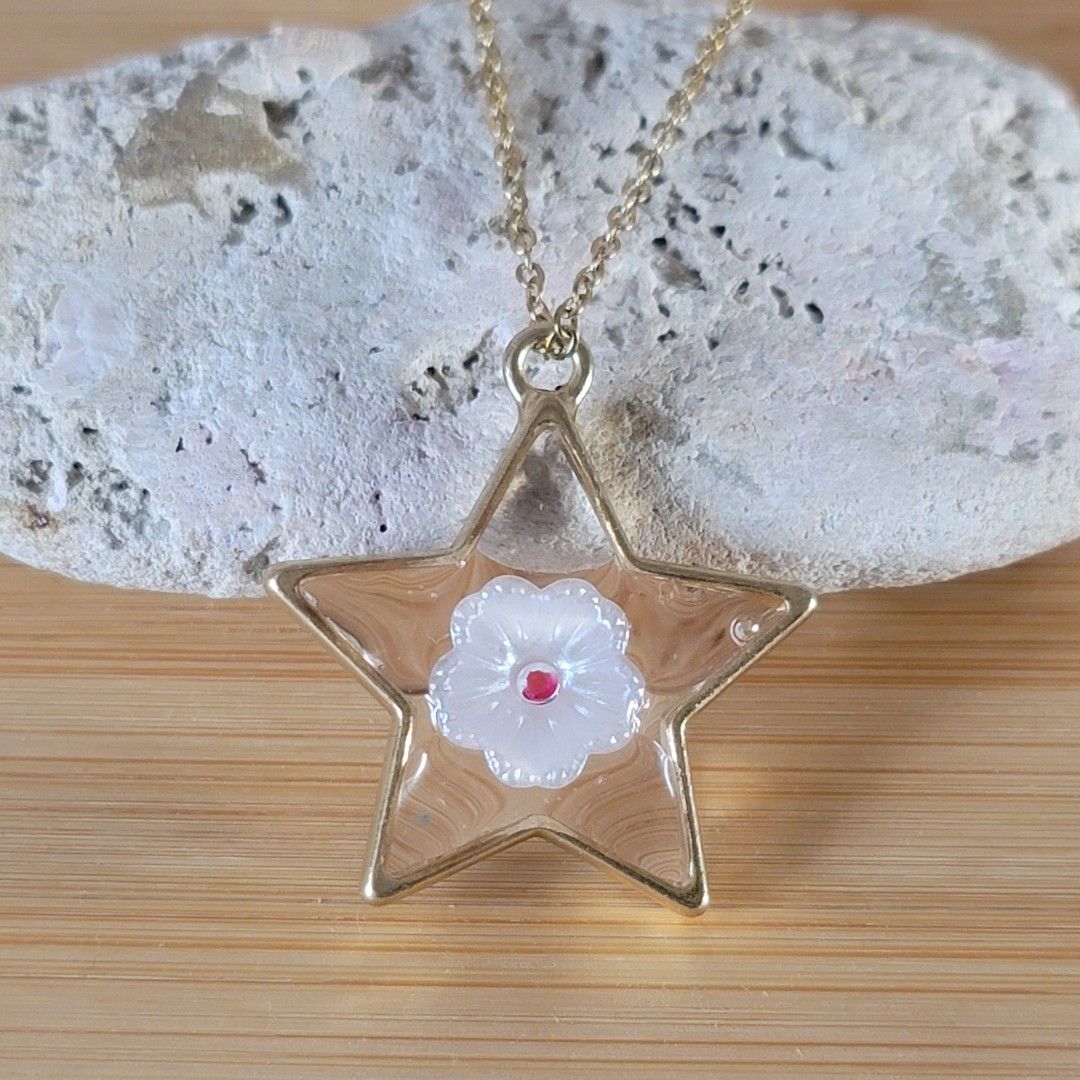 Médaillon résine étoile fleur nacrée