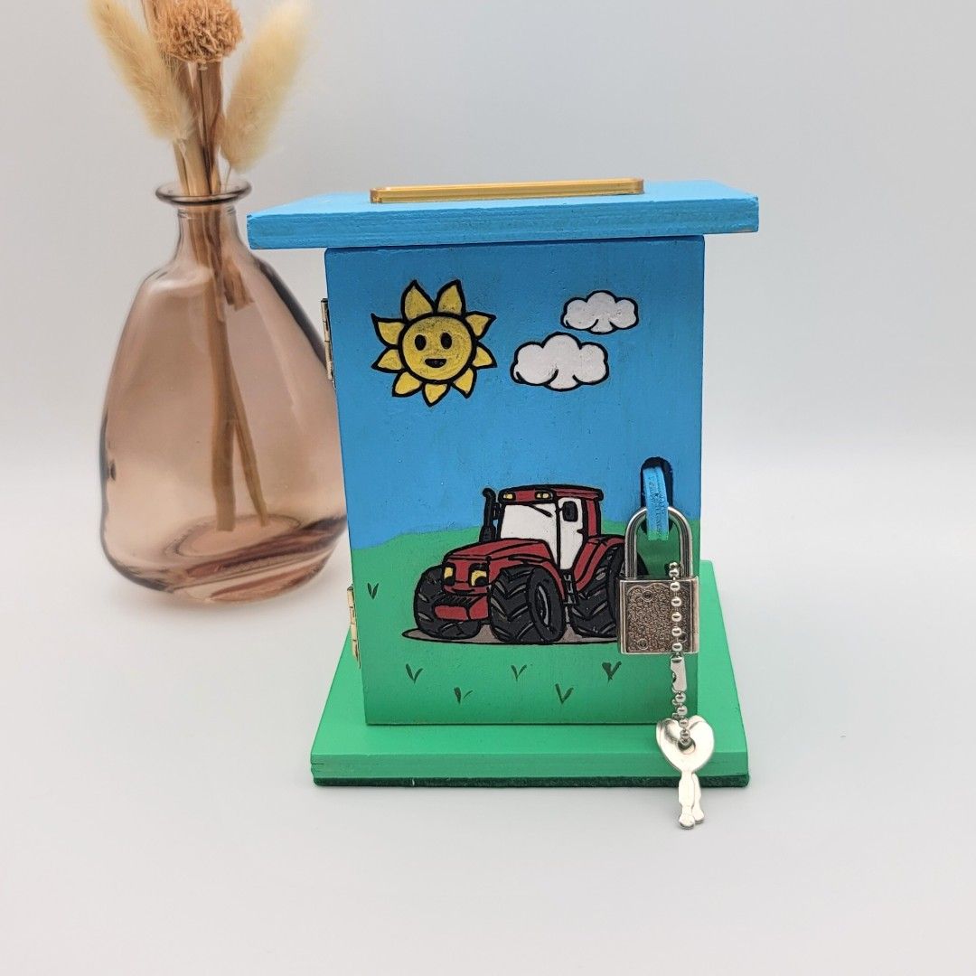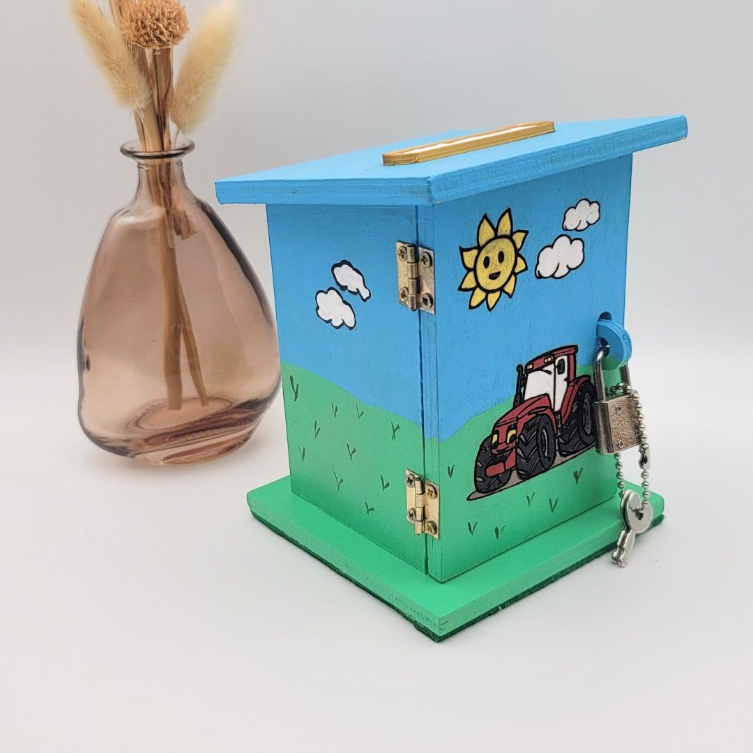 En route pour les économies ! Cette tirelire en bois unique, ornée d'un petit tracteur gravé au laser et peinte à la main, est le cadeau idéal pour les petits fermiers en herbe qui souhaitent protéger leurs trésors.