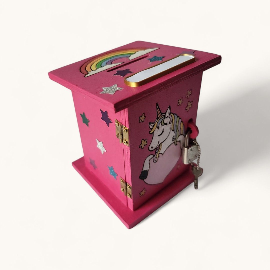 Découvrez ma tirelire licorne, un véritable trésor de magie et de couleurs ! Avec son design féérique, elle rend l’épargne ludique et stimule l’imagination des petits rêveurs. Ajoutez une touche de magie et incitez les économies à prendre leur envol !
