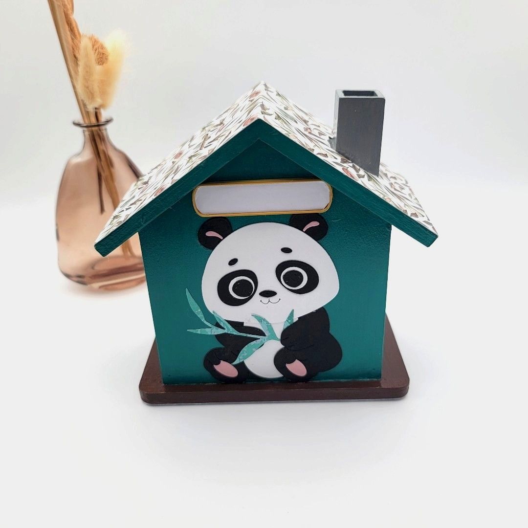 Tirelire Maison Panda en Bois