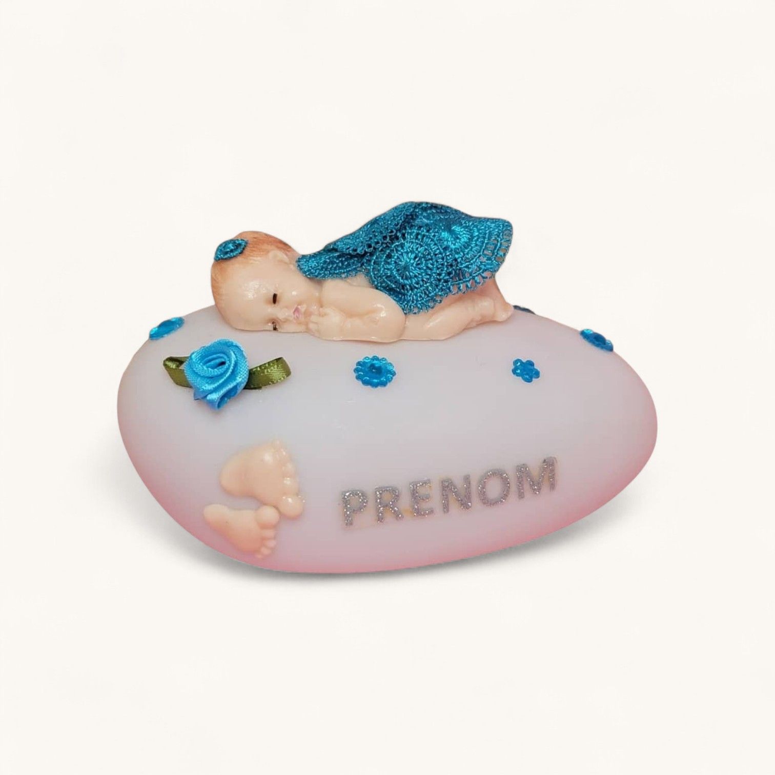 Veilleuse galet bébé fille habillage dentelle bleue